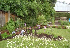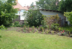 Verringerung der Rasenfläche und Untergliederung des Gartens, um die Ansicht vom Haus aus zu verbessern. |
