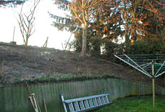 Neugestaltung eines ehemals verwilderten Hanggrundstückes: Die Pflanzen sollen sowohl Wurzeldruck, Tropfwasser und Laubfall der bestehenden Großgehölze ertragen als auch die Fläche zügig und dauerhaft bewachsen, ohne diese jedoch wieder zu schnell zu überwuchern. |